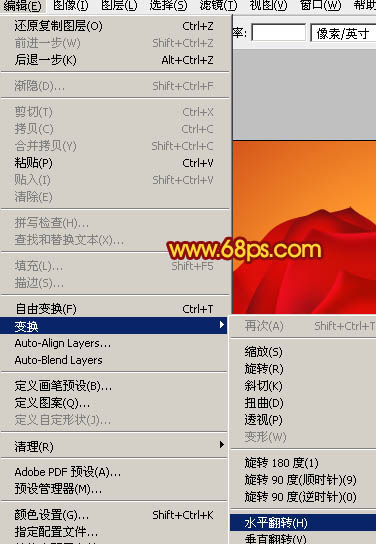 > 变换 > 水平翻转,确定后适当调整好位置,效果如图25。