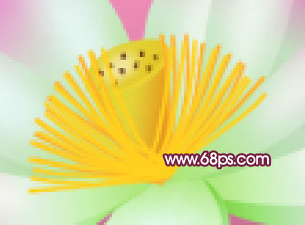 10、用钢笔勾出图19所示的选区,羽化3个像素后填充颜色:#F1E89B,取消选区后新建一个图层,把前景颜色设置为:#7C4818,然后用画笔点上一些小点如图20。