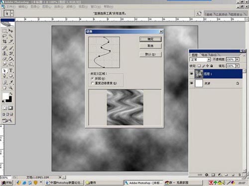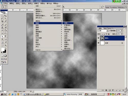 第一步:新建图层,然后前景为白,背景为黑,执行云彩。