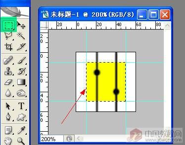 4、移动参考线位置到10、50像素处,(水平和垂直的同时移动)用矩形选框工具拉出选区。