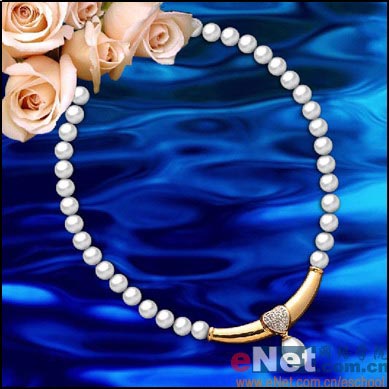 11、将珍珠层链接合并后再复制一层,然后按“Ctrl+T”键,将其水平翻转,放在另一面,效果如图17所示。