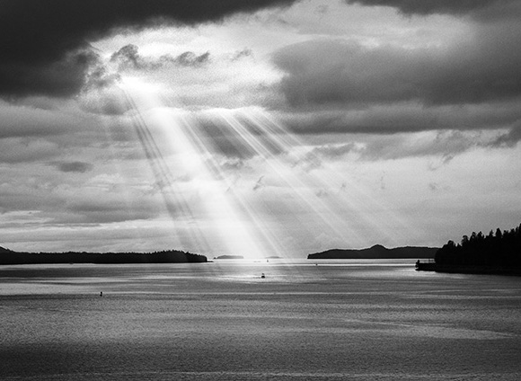 制作透射光束的方法有很多,用滤镜是比较常见的。这里介绍一种纯手工制作方法。大致过程:先设定好光源位置,用曲线等调亮。然后选取高光区域,拉成光束效果,用蒙版控制好区域。后期再给光束底部增亮即可。