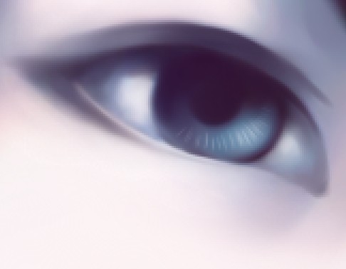 10、选用深色画笔勾勒瞳孔,瞳仁外侧以及上眼皮投射下来的阴影,眼白处的的处理一般是靠近瞳仁的地方比较亮(这时候的高光区宜选用蓝色部分的浅色区)两端会比较暗,眼球是球形的嘛。