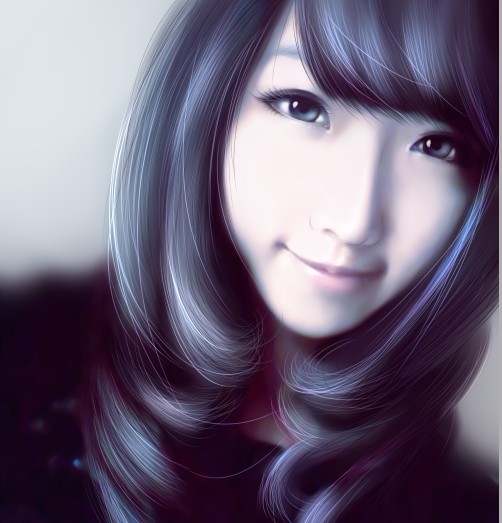 选取浅蓝色勾勒亮发丝,这些发丝的处理请童鞋们天马行空,飘逸一些无妨的。