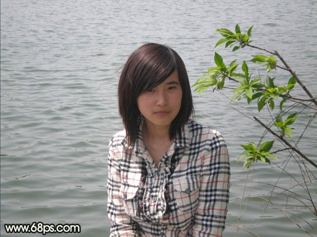 原图素材凌光闪烁的湖面以及岸上的翠绿小树,让人想起来江南独特的水乡风情。特意在处理图片的时候在背景部分加上了一些类似雨雾蒙蒙的效果,以此来加强水乡的感觉。