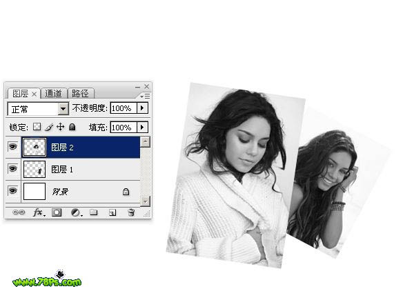 1、首先新建一个白色的文档大小自定,把这2张人物照片用移动工具拖进文档中,按SHIFT+CTRL+U去色,按CTRL+T改变大小变换方向。