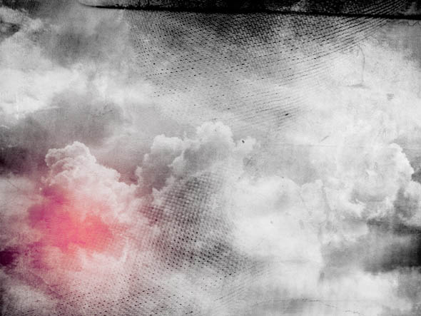 3、同样拖进下面的天空素材图,把它放在顶部,模式变亮,添加蒙版,擦除肖像照片。