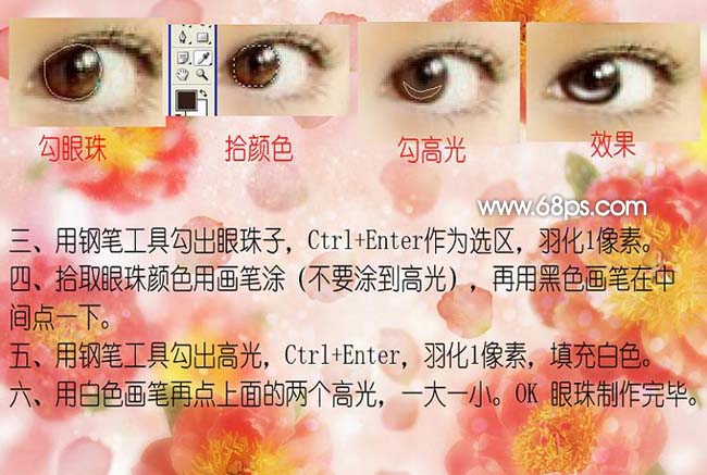 3、用钢笔工具勾出眼珠子,按Ctrl + Enter转为选区,羽化1像素。