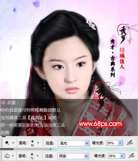 10、衣服用减淡工具擦高光,如图。