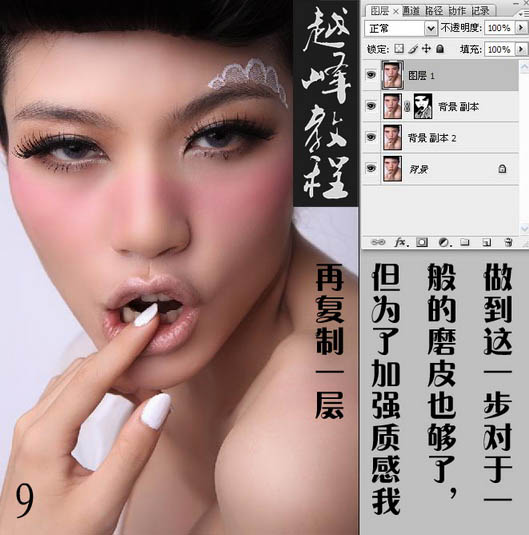 9、做到这一步对于一般的磨皮也够了。为了加强质感,我再复制一层。