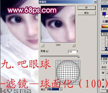 9、用椭圆选框工具狂选眼珠部分羽化一下,再执行:滤镜
