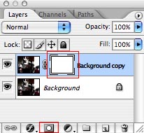 5、点击层面板底部“添加图层蒙板”,点击图层选择“图层蒙板缩略图”如下图8(图层中红色框位置)
