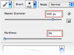 6、选择“笔刷工具”,设置主直径值为“400 px”,然后使用笔刷工具点击照片,设置如图9。 效果如图10
