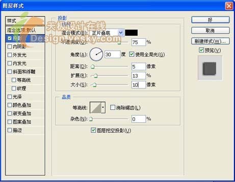 13、选中像框,选择菜单栏中的“图层”“图层样式”“投影”命令,参数设置如图11所示。