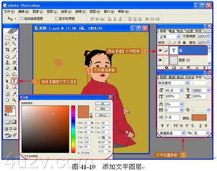 (17) 添加文字图层。使用【横排文字工具】添加一个文字图层,如图 41-19 所示。