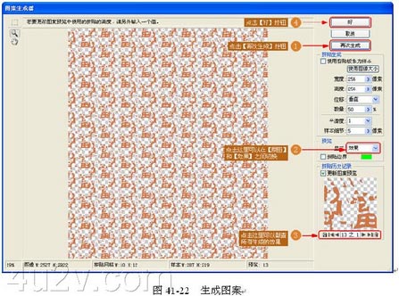 (20) 生成图案。在【图案生成器】的对话框中可以生成多个效果,在【显示】选项下可以切换【原图】和【效果图】,最后点击【好】按钮完成【图案生成器】,如图 41-22 所示。