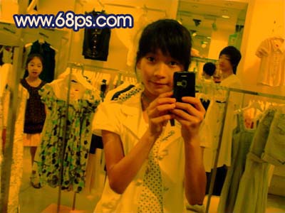 1、打开原图,新建一个图层,填充颜色:#FF6D02,然后把图层混合模式改为“变暗”,效果如图1。