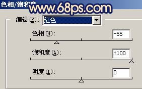 3、创建色相/饱和度调整图层,参数设置如图3,4,效果如图5。