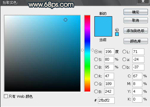 6:新建一个图层填充颜色:#2fbdf2 如图,然后把图层混合模式改为柔光。