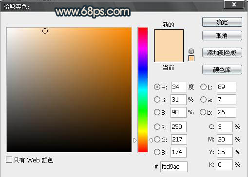 新建一个图层填充颜色:#fad9ae 如图,然后把图层混合模式改为“正片叠底”,图层不透明度改为:40%。