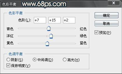8:床色色彩平衡调整图层,数值如下: