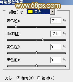1、打开素材图片,创建可选颜色调整图层,对黄、绿、中性色进行调整,参数设置如图1 - 3,效果如图4。这一步把绿色部分转为橙黄色。