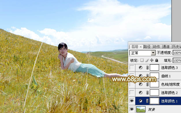 Photoshop给草坡上的美女加上小清新的青黄色(2)