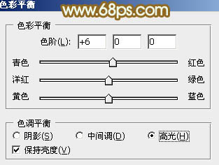 6、创建色彩平衡调整图层,对中间调,高光进行调整,参数设置如图19,20,效果如图21。这一步同样给图片增加橙黄色。