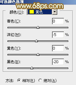 7、创建可选颜色调整图层,对红,黄进行调整,参数设置如图22,23,效果如图24。这一步把图片中的橙黄色调淡。