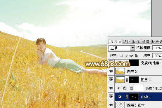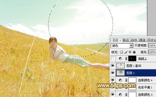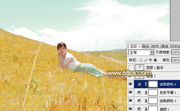 Photoshop给草坡上的美女加上小清新的青黄色(6)