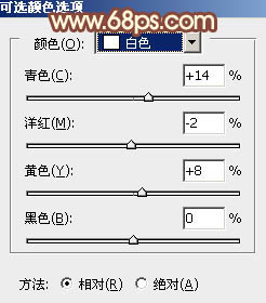 6、创建可选颜色调整图层,对红、黄、白进行调整,参数设置如图18 - 20,效果如图21。这一步给图片增加橙红色。