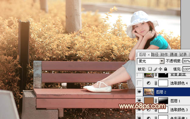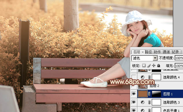 Photoshop给长凳上的美女加上柔美的红褐色(5)