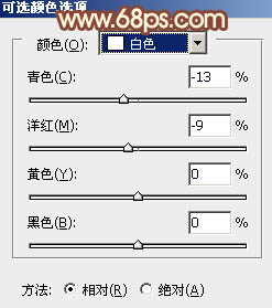 9、创建可选颜色调整图层,对红,白进行调整,参数设置及效果如下图。这一步主要加强图片高光部分的颜色。