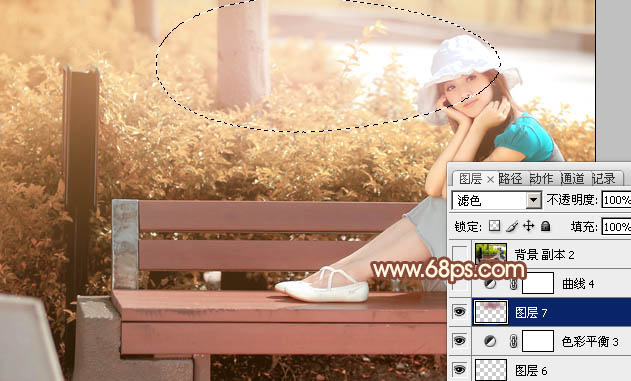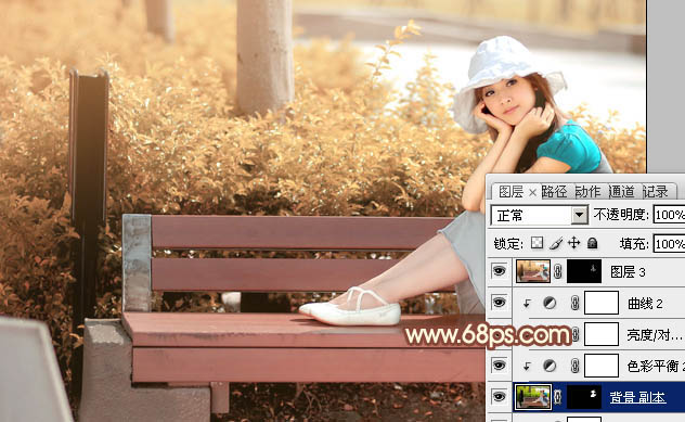 Photoshop给长凳上的美女加上柔美的红褐色(6)