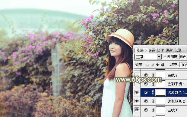 5、按Ctrl + J 把当前可选颜色调整图层复制一层,不透明度改为:50%,效果如下图。
