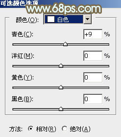12、创建可选颜色调整图层,对红、黄、青、白进行调整,参数设置如图39 - 42,效果如图43。这一步主要把人物肤色调红润一点。