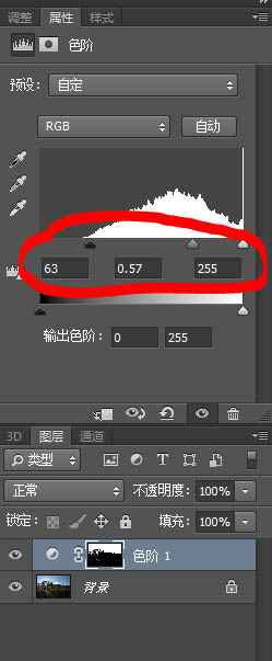 4、上一步已经得到选区,创建一个‘色阶”调整层,参数调节如图。因为使用了蒙版,所以地面是不会被影响的。