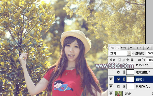 Photoshop打造流行的橙黄色树林人物图片(3)