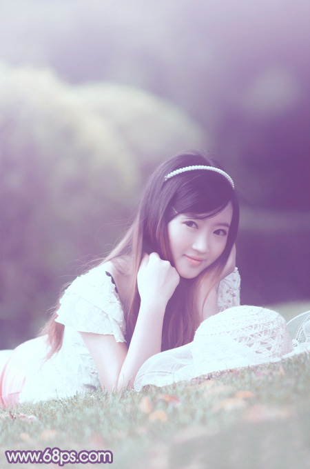 素材图片比较简洁,很适合中性图片调色。过程:先微调一下主色,然后降低图片的饱和度做成中性图片,后期在暗部渲染一点紫色,把整体调柔和即可。