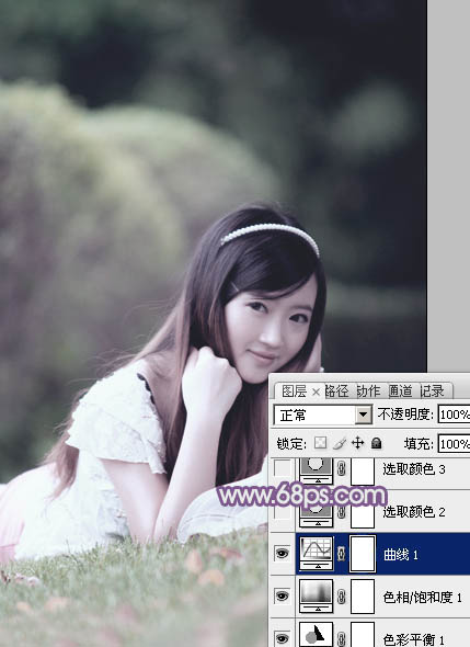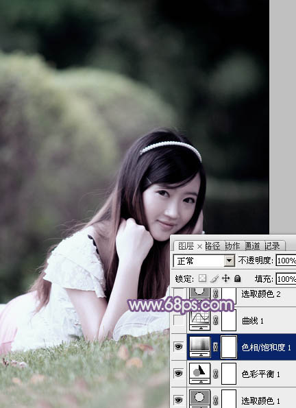 Photoshop给草地上的美女加上唯美的中性紫色(3)