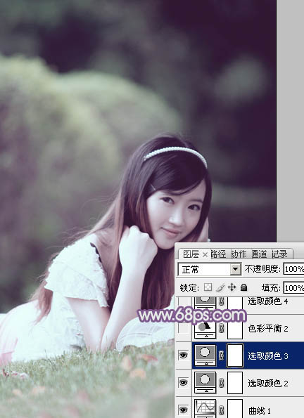 Photoshop给草地上的美女加上唯美的中性紫色(4)