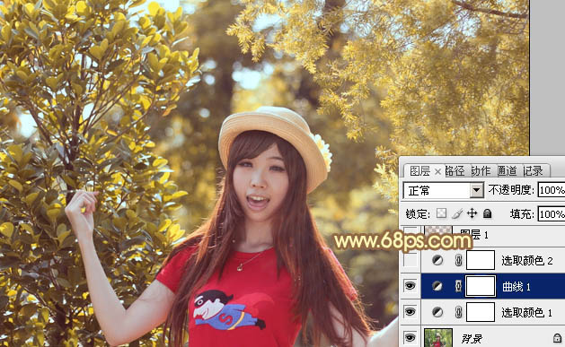 Photoshop给树林人物加上唯美的红褐色(3)