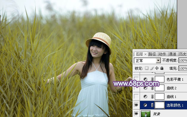 Photoshop把绿色芦苇中的美女照片转为秋季效果