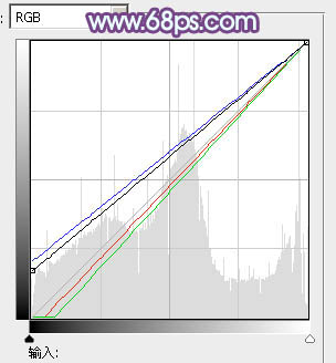 3、创建曲线调整图层,对RGB、红、绿、蓝通道进行调整,参数设置如图8,效果如图9。这一步主要把图片暗部颜色调淡,并增加蓝色。