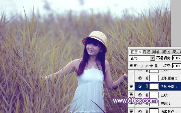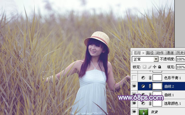 Photoshop把绿色芦苇中的美女照片转为秋季效果(3)
