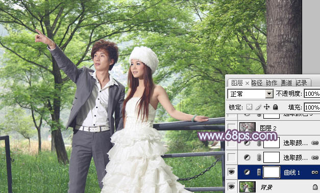 Photoshop给树林婚片加上唯美的蓝紫色