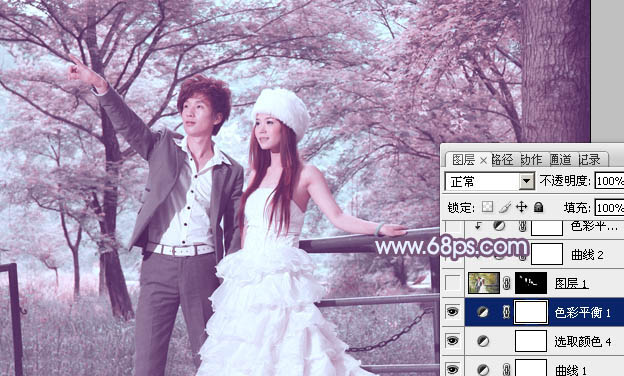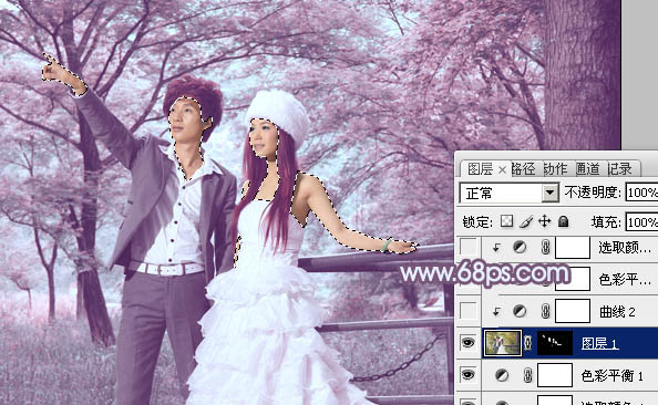 Photoshop给树林婚片加上唯美的蓝紫色(5)