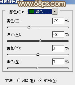 9、再创建可选颜色调整图层,对红、黄、绿、白进行调整,参数设置如图23 - 26,效果如图27。这一步把图片中的暖色稍微调淡一点。