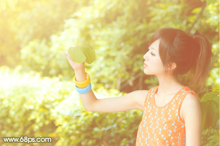 素材图片主色以绿色为主,转为黄褐色是比较容易的。只需要把绿色部分转为橙黄色或黄绿色,暗部颜色转为红褐色或黄褐色,然后把整体颜色调柔和即可。