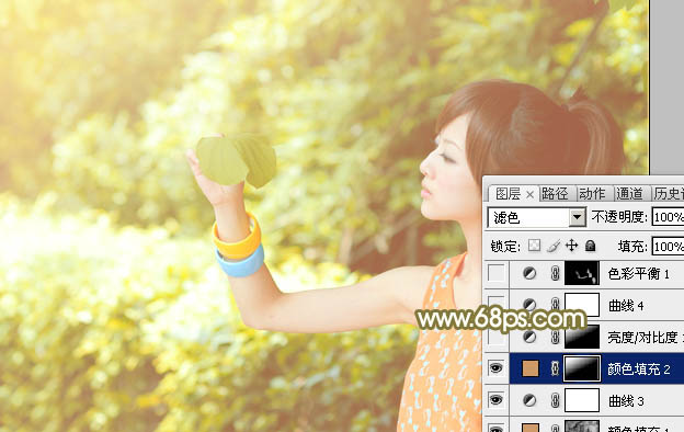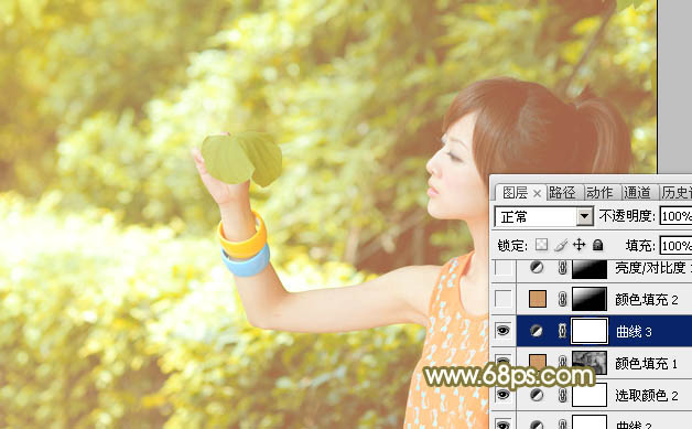 Photoshop给绿树边的美女加上唯美的黄褐色(5)